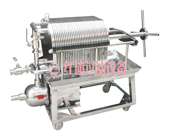 層疊式過濾器的工作原理:懸浮液用料泵送入濾機每個密閉的濾室,在壓力租用下,濾液透及濾布過濾層,經濾布出液口排出,濾渣則留在濾框內形成濾餅,從而達到固液分離。